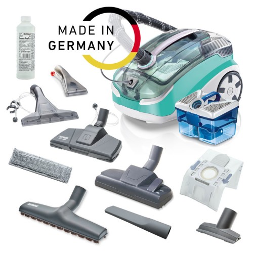 Пилосос оснащений запатентованою системою водяної фільтрації THOMAS AQUA-BOX, яка ефективно очищає повітря у приміщенні, затримуючи 100% пилку та 99,99% пилу. Така система не тільки забезпечує абсолютну чистоту, а й робить цей пилосос ідеальним для людей, які страждають від алергій. Додаткова альтернатива у вигляді HEPA-мішка робить прибирання легким і швидким, коли йдеться про грубі забруднення.