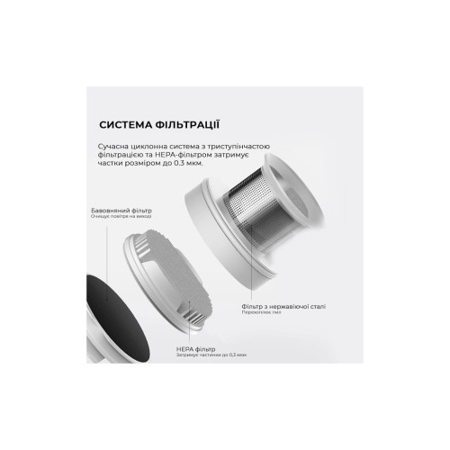 Deerma DX1000W створений для сухого прибирання, використовуючи контейнерний пилозбірник з ємністю 0.5 л, що дозволяє зручно збирати пил і сміття з різних поверхонь. При цьому ви зможете швидко очистити ємність, не відволікаючись від процесу. Модель також оснащена потрійною системою фільтрації, яка включає НЕРА-фільтр, що забезпечує чистоту повітря у приміщенні, затримуючи навіть найдрібніші частинки пилу і алергени.