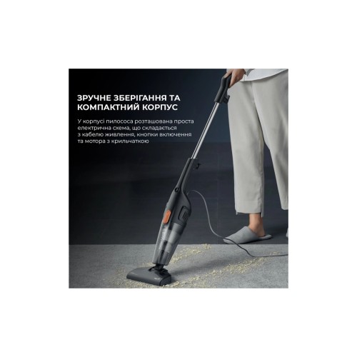 Легка вага в 1.5 кг дозволяє без зусиль переносити пилосос з однієї кімнати в іншу, мінімізуючи зусилля користувача. Прилад працює від мережі, що гарантує стабільну роботу без ризику розрядки батареї.