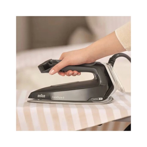 Braun CareStyle 5 пропонує повний спектр функцій для швидкого та комфортного прасування будь-яких виробів. Завдяки технології iCare температура автоматично підлаштовується під різні тканини, тому вам більше не потрібно відкладати делікатні речі. Увімкніть режим Turbo, щоб отримати максимальну потужність пари для щільного одягу, або перейдіть на ECO, щоб заощадити до 55% енергії, зберігаючи при цьому ідеальну якість видалення складок. Технологічний Braun CareStyle 5 знає підхід до різних типів тканин.