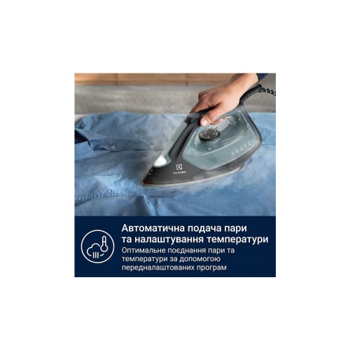 активатор м'якості води; led-підсвічування; термостат; три рівня безпеки; стійка до подряпин підошва; система фільтрації із змінним антикальк картриджем; автоматичне сповіщення про очистку (led індикатор); автоматичне налаштування подачі пари; передвстановлені програми для прасування; індикація гарячої поверхні; готовий до роботи із застосуванням пари через 30 секунд після увімкнення