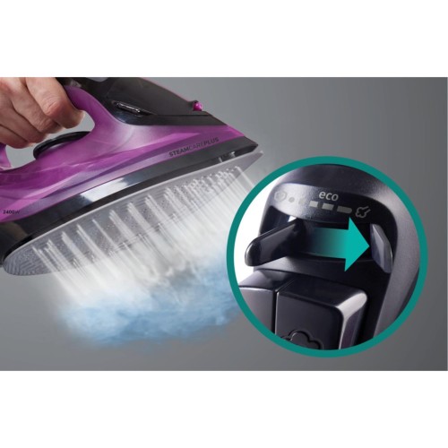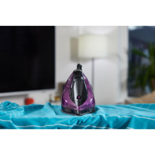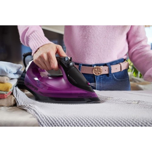 Праска Gorenje SIK2400BKV з керамічною підошвою, потужністю 2400 Вт, об'ємом резервуара 0,45 л, трьома рівнями потужності та функцією вертикальної пари. Має паровий удар до 180 г/хв, безперервну подачу пари до 40 г/хв, системи проти накипу та крапель, ECO-режим, автовідключення, поворотний шнур 360° та широкий отвір для доливання води.