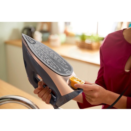 Тривала продуктивність із функцією швидкого видалення накипу та підошвою SteamGlide Elite із вдосконаленим захистом від подряпин.Паровий удар до 260 г розпрасовує важкі складки Глибше проникає у тканину для легшого усунення найважчих складок. Система швидкого видалення накипу для легкого чищення праски та тривалої ефективності відпарювання. Наша ексклюзивна підошва SteamGlide Elite – це наша найкраща підошва, що відмінно ковзає та має максимальний захист від подряпин.