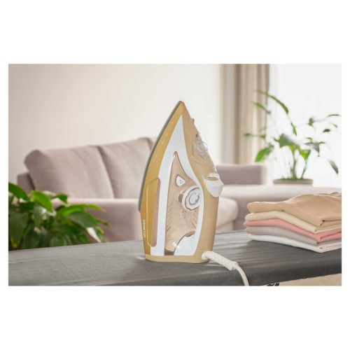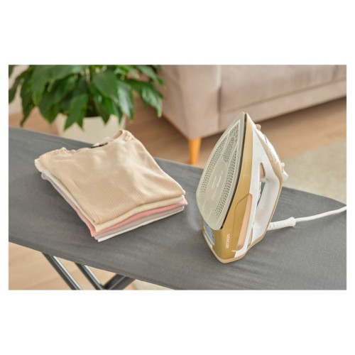 Cтандартна праска, потужність 2600 В, керамічна підошвою, підтримує вертикальне відпарювання, паровий удар і постійне пароутворення, потужність постійного пара 35 г/хв та парового удару 160 г/хв, об'єм резервуара для води 470 мл, захист від накипу, функція самоочищення, технологія "Крапля-стоп", автоматичне відключення та можливість використання спрею.
