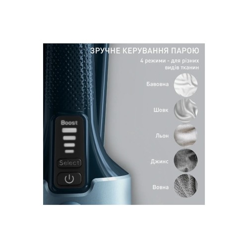Безперервний паровий режим з 4 налаштуваннями для всіх типів тканин, що підходять для прасування, забезпечує легке відпарювання та ідеальний догляд за одягом щодня.