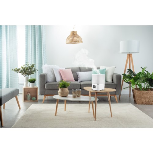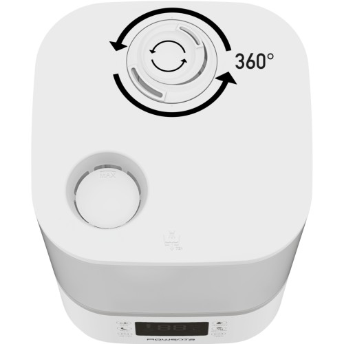 Потужна продуктивність туману 380 мл/год забезпечує швидке зволоження, а орієнтовані на 360° отвори для випуску повітря забезпечують рівномірну дію по всій кімнаті. Завдяки цьому він підходить як для малих, так і для великих приміщень, до 50 м2.