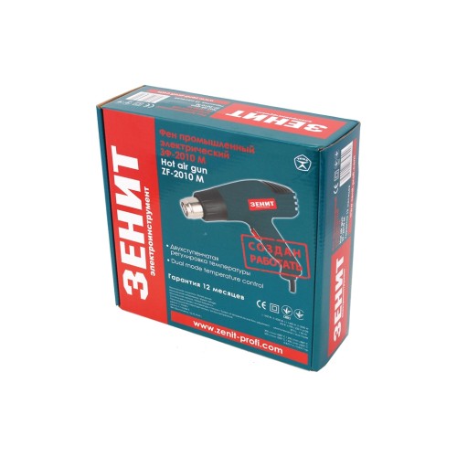 Фен промисловий електричний ЗЕНИТ ЗФ-2010 М — надійний інструмент для швидкого локального нагріву різних матеріалів при ремонтно-будівельних роботах (пайки та формування пластика, сушіння та продування поверхонь, при підрізанні руберойду, лінолеуму, настилі покрівельних матеріалів, знятті старої фарби та шпалер, лудінні, розжарюванні деревного вугілля, при місцевому розморожуванні, у тому числі металевих водопровідних труб, замків, сходинок.