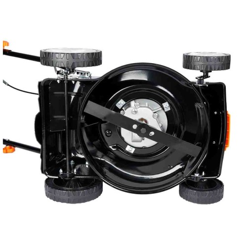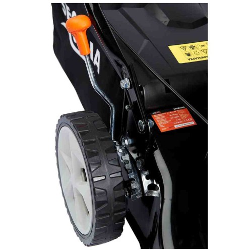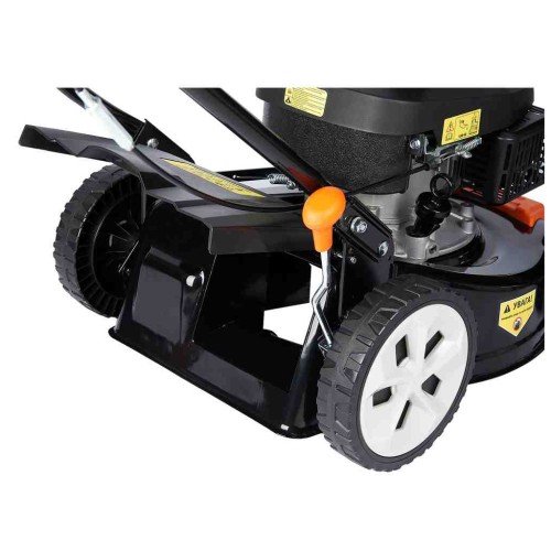 ✔ Оснащена потужним 4-тактним двигуном (99 см3), має функції збору трави, центральне регулювання висоти скошування (8 позицій, 25–75 мм).