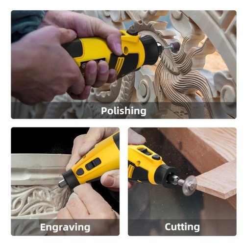 Компактна міні-шліфувальна машина 130 Вт із 6-ступеневим регулюванням — ідеальна для шліфування, полірування, гравіювання та дрібних робіт. У комплекті 41 аксесуар для різних завдань. Упакована в яскраву коробку.
