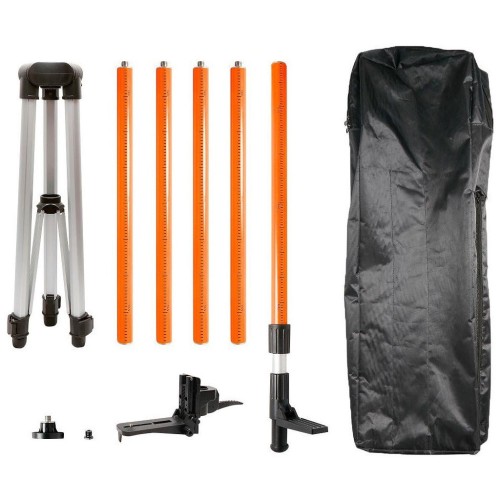 Алюмінієвий штатив Neo Tools 3.7 м відрізняється легкою і, разом з тим, міцною конструкцією. Присутній вбудований рівень для вирівнювання.