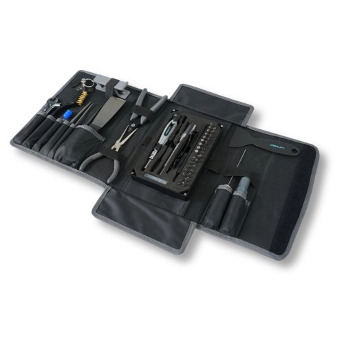 викрутки; біти; подовжувач; пінцети; щітка; напилок; кусачки; торцевий ключ; гайковий ключ; скальпель; шпатель