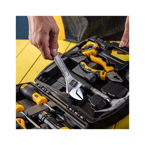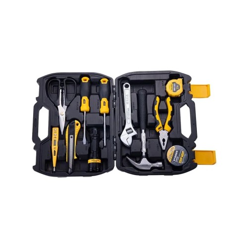 Комплект включає 11 ретельно підібраних інструментів, забезпечуючи все необхідне для швидкого вирішення побутових задач. Серед інструментів є зручний молоток-гвоздодер для зручного забивання і витягування гвіздків, а також розвідний ключ 200 мм і пасатижі 160 мм, які ідеально підходять для маніпуляцій з гайками та іншими кріпленнями.