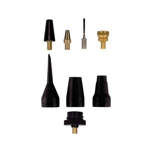 Набір приладдя для стисненого повітря від Einhell з 13 предметів дає змогу використовувати стиснене повітря в різних сферах і підходить для компресорів з робочим тиском не менше 8 бар. Практичний пістолет для здування можна використовувати для очищення робочих зон і видалення пилу з поверхонь, що фарбуються. Фарборозпилювач спеціально розроблений для роботи з лакофарбовими матеріалами. Фарборозпилювач підходить для видалення іржі та лакофарбових матеріалів.