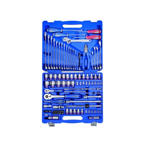 Набір інструментів KING TONY 103 шт. 1/4" та 1/2" (7503MR) - це ідеальний вибір для професіоналів та автолюбителів, які цінують високу якість та надійність своїх інструментів. Цей комплект створений спеціально для автомобільного використання, забезпечуючи всі необхідні інструменти для виконання широкого спектра завдань. З урахуванням всіх компонентів, цей набір дозволяє легко та ефективно проводити технічне обслуговування та ремонт автомобіля.