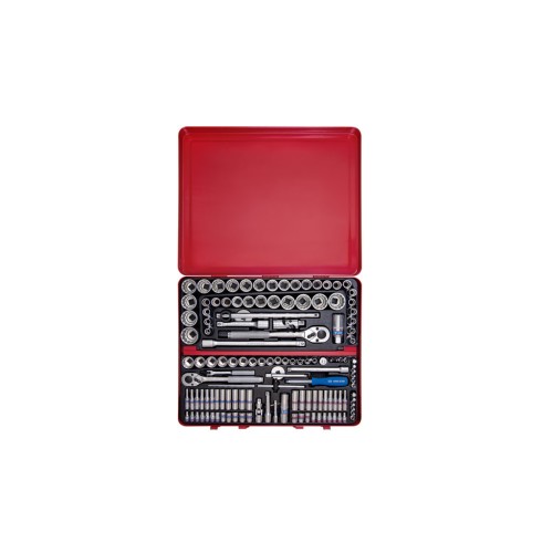 Особлива увага приділяється торцевим головкам, яких в наборі аж 104 шт. Вони мають як дюймову, так і метричну розмірність, що дозволяє використовувати набір в різних умовах. Форма робочого профілю цих головок включає вставки PH, шестигранник, дванадцятигранник та вставки Hex. Це робить набір універсальним для вирішення будь-яких завдань. Довжина головок може бути як подовжена, так і стандартна, що забезпечує доступність навіть в найтісніших місцях.