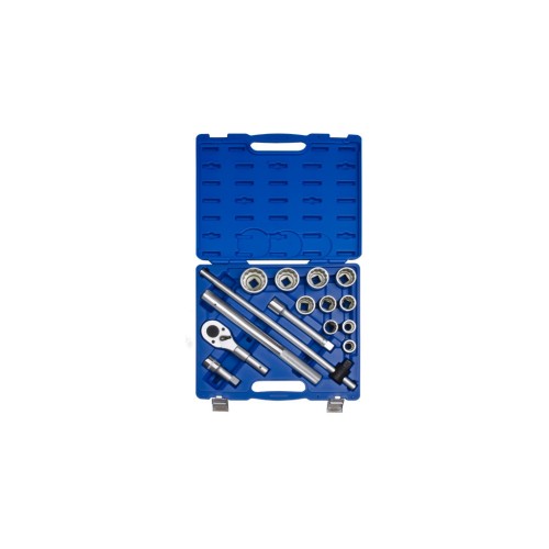 Серед важливих елементів набору присутні Т-подібний вороток та тріщіточна рукоятка з розмірами 3/4", довжина яких становить 500 мм. Ці інструменти забезпечують надійне захоплення та чудову передачу зусилля, що гарантує більш точну та стабільну роботу. Крім того, подовжувачі на 100 мм та 200 мм дозволяють дістатися до важкодоступних місць та значно підвищують функціональність набору.