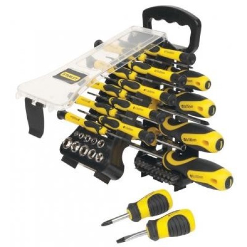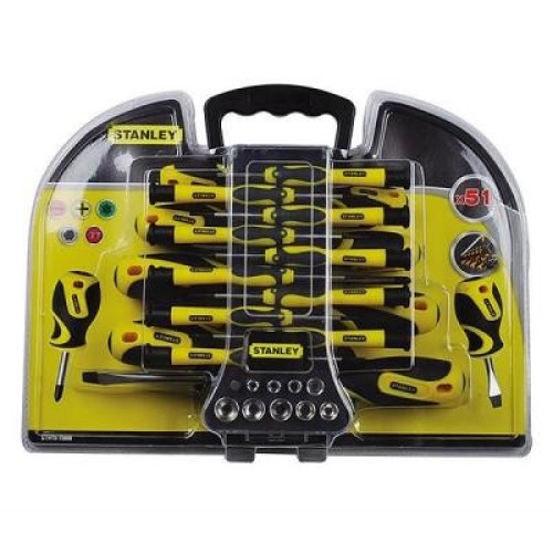 Набір викруток Stanley (51шт) (STHT0-70888) складається з комплекту інструментів, у кількості 51 шт., які складаються з безлічі викруток, що мають різний тип наконечників, викруткового тримача 1/4", набору викруткових вставок різних типів шліців, адаптера на 1/4" для торцевих головок і 9 торцевих головок.