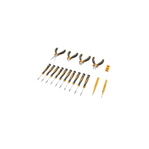 Набір прецизійних інструментів Tolsen на 17 предметів — ідеальний вибір для точних робіт у сфері електроніки, годинникової справи, ремонту окулярів, мобільної техніки та інших дрібних пристроїв. У комплекті: різні викрутки, пінцети, інструменти для розбирання та збирання.