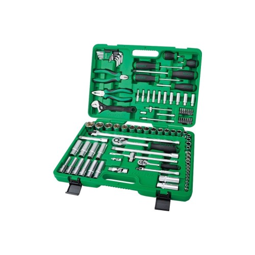 Основу набору складають торцеві головки в кількості 54 шт, котрі мають метричну розмірність і шестигранну форму робочого профілю, що забезпечує надійне та точне затягування. Стандартні і подовжені довжини головок дозволяють працювати в різноманітних умовах, що робить цей набір особливо цінним для автомобільних майстрів. Розмірний діапазон торцевих головок починається від 1/4" і досягає 1/2", що дозволяє працювати з різними розмірами кріпильних елементів.