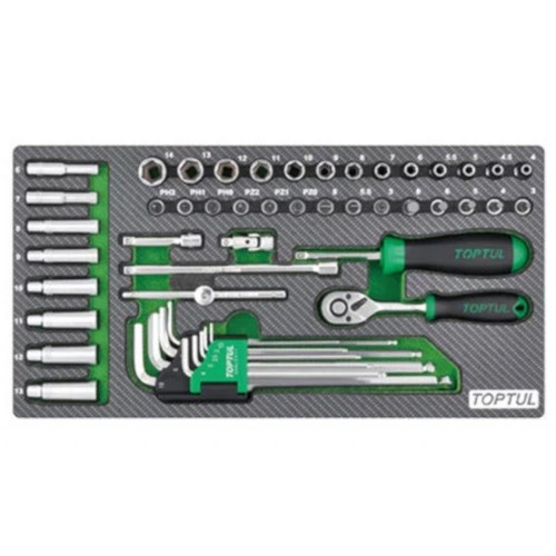 Кожен компонент набору Toptul виготовлений з високоякісних матеріалів, що забезпечує їх зносостійкість і довговічність. Це робить їх ідеальним помічником для виконання найскладніших завдань. Бренд Toptul славиться як професійний вибір для майстрів, що вимагають високої якості та надійності у своїй роботі.