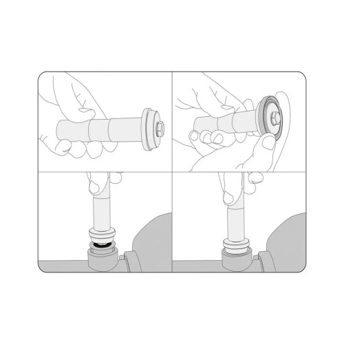 Тримач довжиною 150 мм з рифленою поверхнею запобігає прокручуванню в руці. Всі компоненти набору виготовлені з високоякісного алюмінієвого сплаву, що гарантує довговічність і надійність.