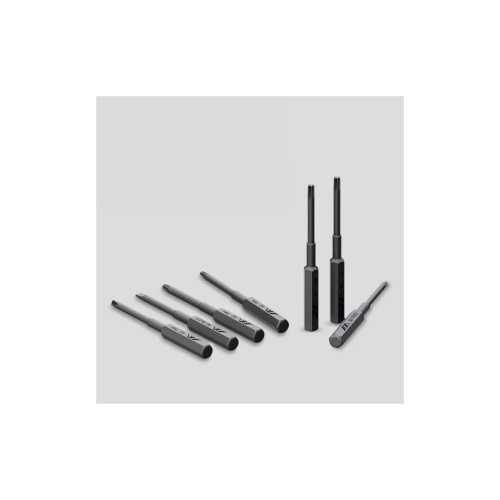 При створенні цього набору використані лише перевірені та довговічні матеріали. Насадки виконані із сплаву інструментальної сталі S2, який гарантує зносостійкість та стійкість до механічних навантажень. Рукоятки виготовлені з анодованого алюмінію, що забезпечує легкість та міцність, а пінцети — нержавіюча сталь, що робить їх надійними в експлуатації. Таке поєднання матеріалів гарантує тривалий термін служби та зручність використання.