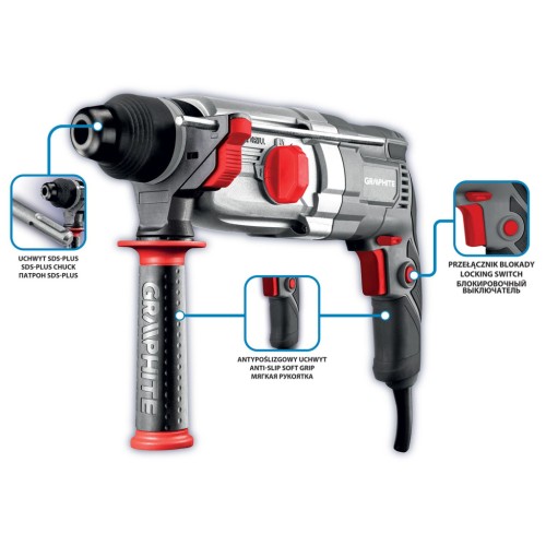 Перфоратор Graphite SDS-plus, 900Вт, 3.4Дж, кейс 6.1кг (58G539)
