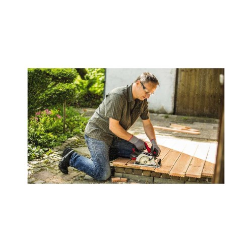 Глибина та кут пропилу акумуляторної ручної циркулярної пилки швидко та легко регулюються без додаткових інструментів. При куті 90° максимальна глибина пропилу становить 54 мм. Пильний диск можна нахиляти до 45°. Блокування шпинделя полегшує заміну пиляльних дисків. Акумуляторна дискова пилка сумісна з напрямною шиною Einhell, яка купується окремо, що полегшує виконання точних та акуратних пропилів.