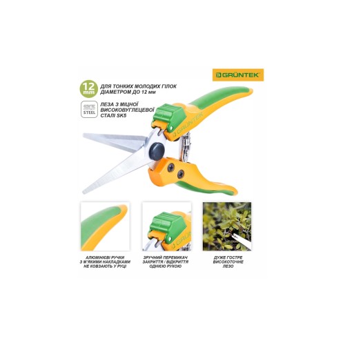 Секатор Gruntek Colibri Long обвідний, d 12мм,198мм (295170200)