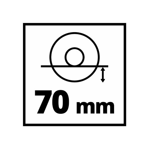 Оброблювальний діаметр диска становить 230 мм, що дозволяє досягти збільшеної глибини різання — до 70 мм. Інструмент комплектується додатковою рукояткою, яку можна встановити в трьох положеннях, забезпечуючи зручність у роботі під різними кутами. М'які ергономічні накладки на корпусі створюють додатковий комфорт під час використання.