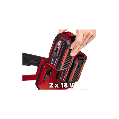 Einhell AXXIO 36/230 Q обладнано безщітковим двигуном, який забезпечує більшу потужність і здатний працювати довше без зносу, що значно підвищує ресурс інструмента. Використання технології TWIN-PACK потребує двох батарей 18 В, що забезпечує надійність енергопостачання та збільшує продуктивність. Крім того, функція плавного пуску і захист від перезапуску забезпечують безпеку роботи, зменшуючи ризик випадкових увімкнень.