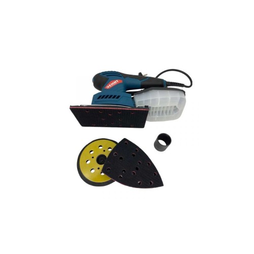 Двигун потужністю 300 Вт гарантує надійну і безперебійну роботу, а велика кількість вібрацій (до 24000) забезпечує відмінну якість фінішної обробки. Інструмент відмінно демонструє свої якості особливо під час шліфування малих і важкодоступних поверхонь, кутів і крайок.