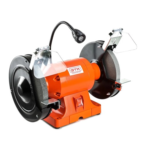 GTM MD3220AL-1 - електричний інструмент з двома абразивними кругами для заточування і шліфування виробів з матеріалів різної щільності. Може використовуватися для сухого заточування ножів, стамесок, а також інших інструментів. Верстат живиться від побутової електромережі 220 В і споживає всього 400 Вт. Особливістю цієї моделі є наявність LED-лампи на гнучкому штативі для підсвічування робочої зони.