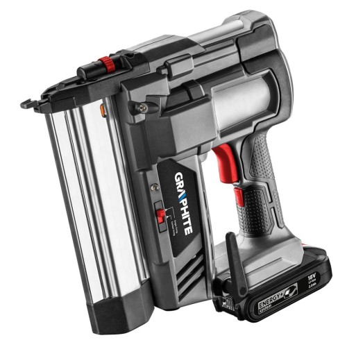 Акумуляторний цвяхозабивач Graphite є частиною серії інструментів Energy+. Цей універсальний інструмент поєднує функції степлера та цвяхозабивача, що робить його ідеальним для різних завдань у столярстві, будівництві та ремонті меблів.
