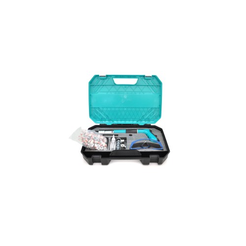 - У комплекті: Захисні окуляри, 100 цвяхів монтажних піроксилінових, Валіза зеленого кольору.