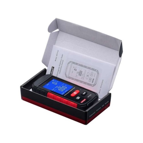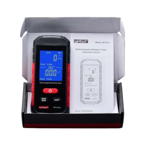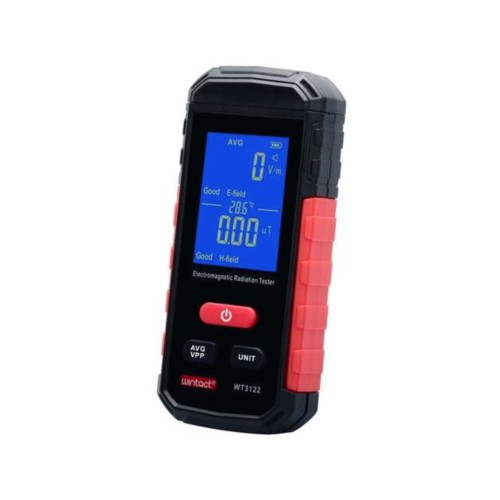 Детектор електромагнітного випромінювання BENETECH WT3122 це прилад, який призначений для вимірювання параметрів електромагнітного поля. Електричне і магнітне поле - це складова частина електромагнітного випромінювання. Прилад являє невеликий коробок. На передній панелі розташований екран ЖК. Під екраном знаходиться світлодіод червоного кольору, який спрацьовує при пікових показаннях приладу сигналізуючи про небезпечне електромагнітне випромінювання. Ще нижче розташовано три кнопки управління: