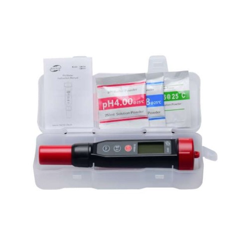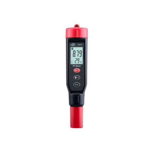 Вимірник кислотності BENETECH GM761 - це професійний цифровий вимірювальний прилад, призначений для вимірювання кислотності (pH) різноманітних рідин. Крім цього, прилад обладнаний температурним датчиком та дозволяє визначати і температуру рідини. Також завдяки датчику температури pH-метр має функцію автоматичної температурної компенсації, що дозволяє визначати кислотність розчину з більшою точністю. Усі показання приладу виводяться на рідкокристалічний дворядковий екран із підсвічуванням. Розмір екрана дозволяє одночасно відображати кислотність рідини та температуру. Крім цього, на екрані показаний рівень заряду батареї та одиниці вимірювання температури - °С або °F.