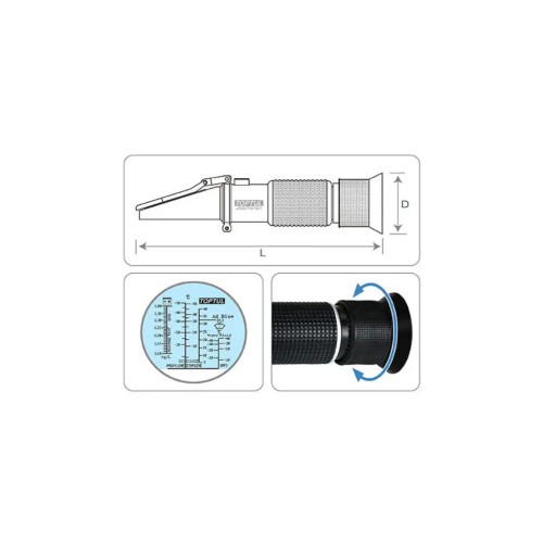 Основна функція цього рефрактометра - вимірювання щільності електроліту в батареї та концентрації сечовFFини в баку AdBlue. Цей процес здійснюється швидко і точно, дозволяючи зберегти час і зусилля під час обслуговування автомобільних систем.