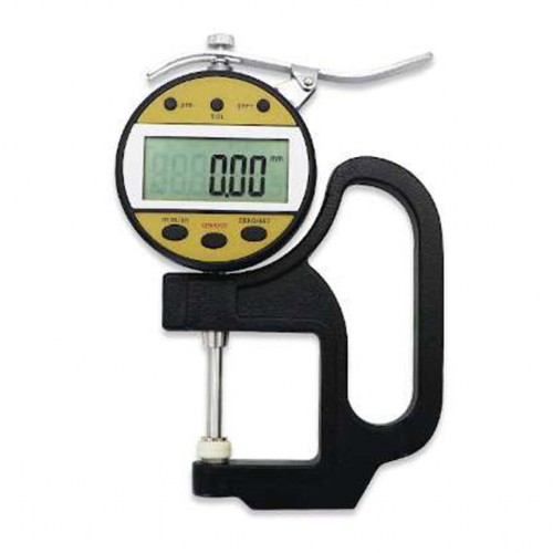 Цифровий індикаторний толщиномер (0-25,4 мм) PROTESTER 5317-25 - це вимірювальний інструмент, який використовують для контролю товщини паперу, поліетиленової плівки, текстилю, шкіри, фольги і т. Д. Завдяки зручній рукояті прилад дозволяє виміряти товщину з точністю до 0,03 мм. За допомогою цифрового індикатора дуже просто і швидко можна порівняти результати вимірювань з еталоном. Діапазон вимірювання від 0 до 25,4 мм. Товщиномір виконаний в міцному металевому корпусі, зібраний якісно, ​​повністю відсутні будь-які зазори і люфти. У приладу великий ЖК екран на якому зручно і без помилок читаються свідчення. Під екраном знаходяться 3 кнопки керування: