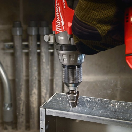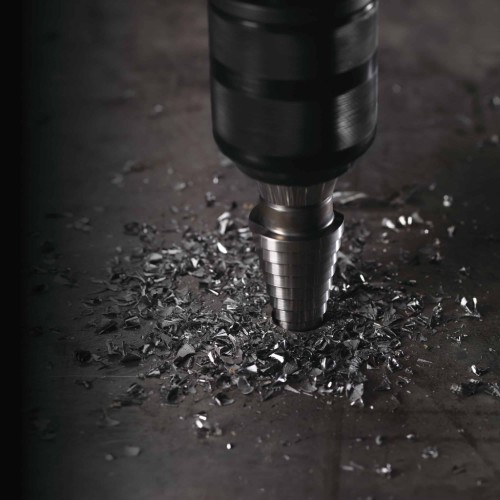 • Спеціальний наконечник та геометрія ступінчастого свердла – зменшує ризик закушування свердла при використанні високошвидкісних акумуляторних дрилів та захищає матеріал від деформації.