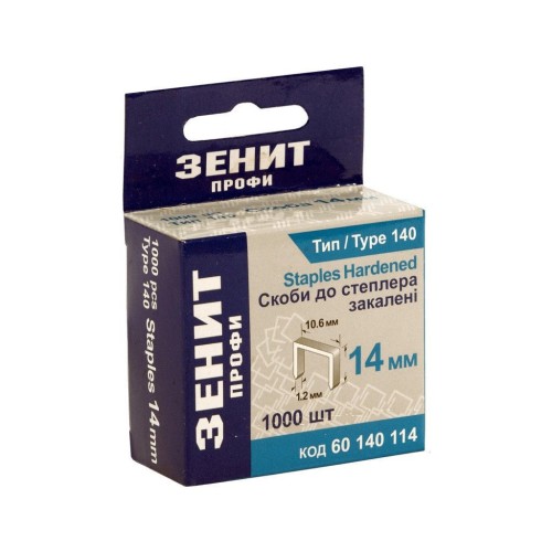 • Скоби для будівельного степлера Зеніт "ПРОФІ" тип 140 скоба 14 мм 1000 шт (60140114)