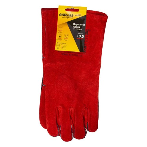 Захисні рукавиці Sigma краги зварювальника р10.5, клас АВ, довжина 35см (червоні) (9449341)