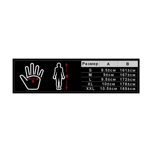 • Подушечки з термопластичної гуми забезпечують максимальний захист вказівного, середнього і великого пальця;