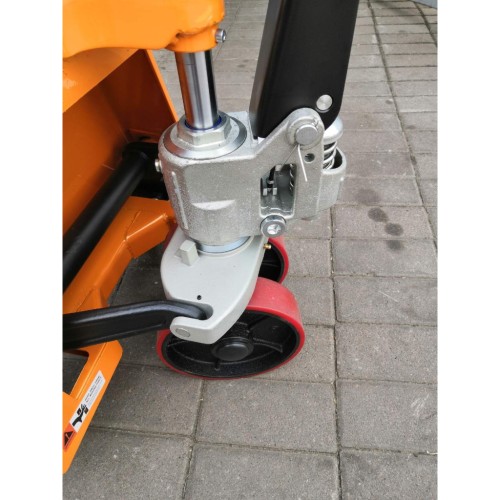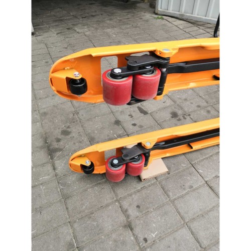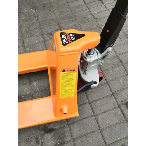 Гідравлічна рокла SYP-IIK 2500 має вантажність 2.5 тонни — це надійне професійне обладнання, яке використовується для переміщення різних вантажів: коробки, піддони тощо. Подібні рокли використовуються здебільшого для перевезення важких вантажів у супермаркетах, складах, на виробництві. Ця модель гідравлічної рокли забезпечена високоякісними поліуретановими колесами, які зроблені з поліуретану та мають гумове покриття. Покриття коліс сприяє безпроблемному переміщенню візка на різній підлоговій поверхні: плитці, полірованому бетоні тощо. Діаметр наявних подвійних задніх коліс становить 200 мм. Товщина цих коліс становить 50 мм. Встановлені на гідровізку передні колеса мають діаметр 80 мм. Їх товщина становить 60 мм. Ці колеса містяться на кожній із вил пристрою.