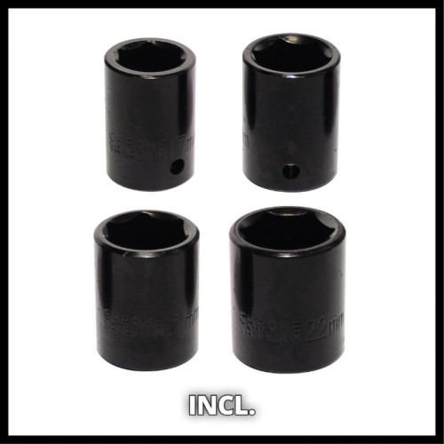 • У комплекті з 4 гайковими бітами (17, 19, 21 і 22 мм)