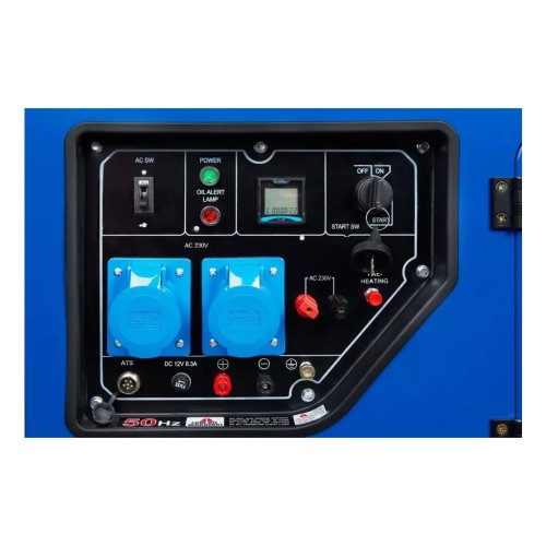 EnerSol SKDS-10EBA - однофазний дизельний генератор робочою потужністю 9 кВт (пікова - 10 кВт), призначений для аварійного або постійного забезпечення електроенергією, що виробляє стабільну та якісну електрику. Тривала робота без дозаправки, захищення від перевантажень, при низькому рівні масла в системі. Забезпечений цифровим мультиметром, можливістю підключення додаткової автоматики.