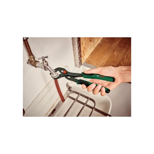 Плоскогубці Bosch для водяних насосів - це надійний вибір для домашніх сантехнічних робіт. Ці універсальні плоскогубці мають 26 зубців для захоплення деталей різних розмірів. Натисканням кнопки їх можна точно відрегулювати до максимального вильоту губок 46 мм. Завдяки ергономічним тонким ручкам з м'якими накладками робота навіть у важкодоступних місцях є стабільною та зручною. Ці плоскогубці виготовлені з міцної, твердої вуглецевої сталі з чорним фосфатним покриттям, що забезпечує високу стійкість до іржі.
