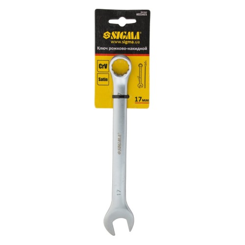 Ключ Sigma ріжково-накидний 17мм CrV satine з підвісом (6021621)
