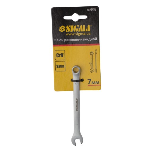 Ключ Sigma рожково-накидний 7мм CrV satine з підвісом (6021521)