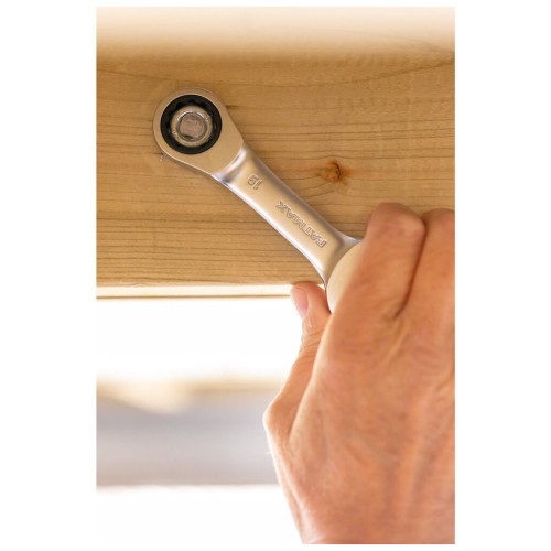 ✔ Головка з храповим механізмом усуває необхідність щоразу встановлювати ключ на кріпильний елемент.